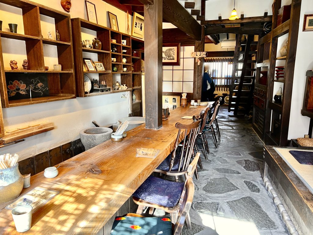 レトロな雰囲気のなかでゆったりとそばをいただけます。
