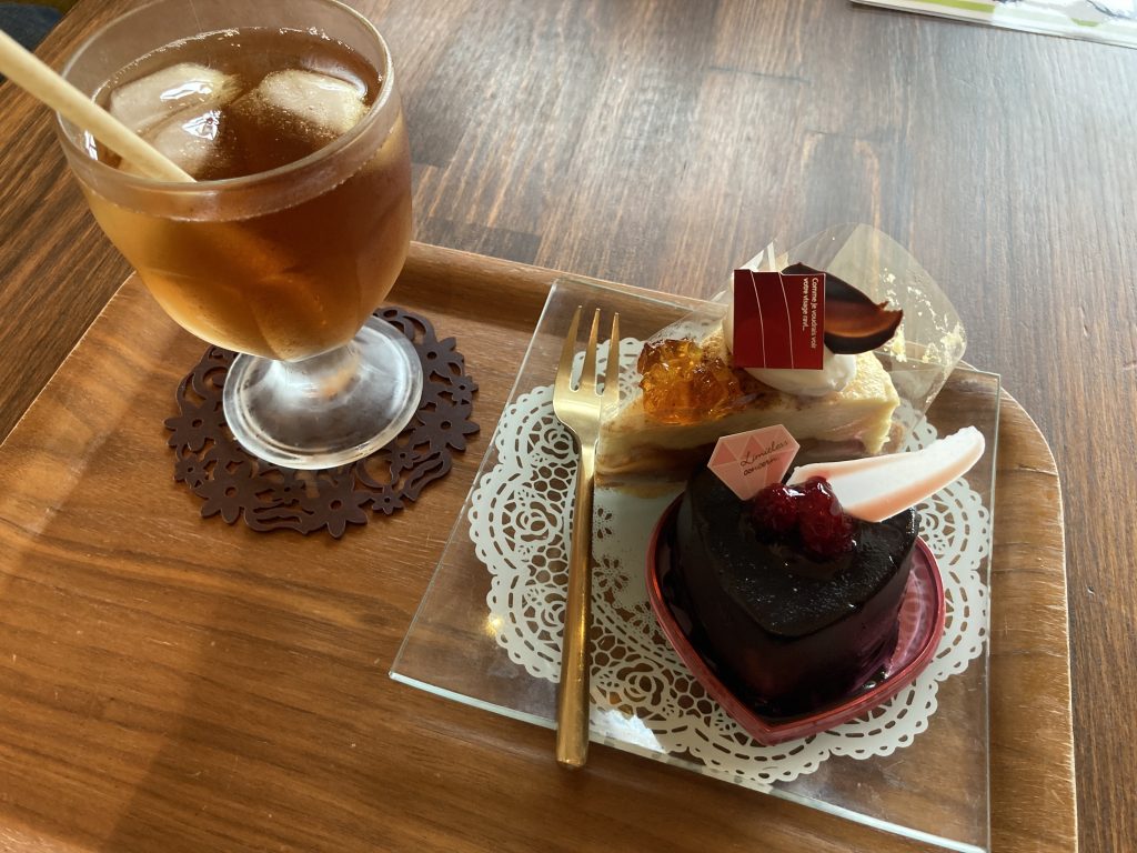本当にどのケーキもお洒落で美味しそうなので迷ってしまいますが...アールグレイのチョコレート系のケーキと、りんごのタルトケーキをチョイスしました!(商品名をメモし忘れてしまいました、すみません汗)