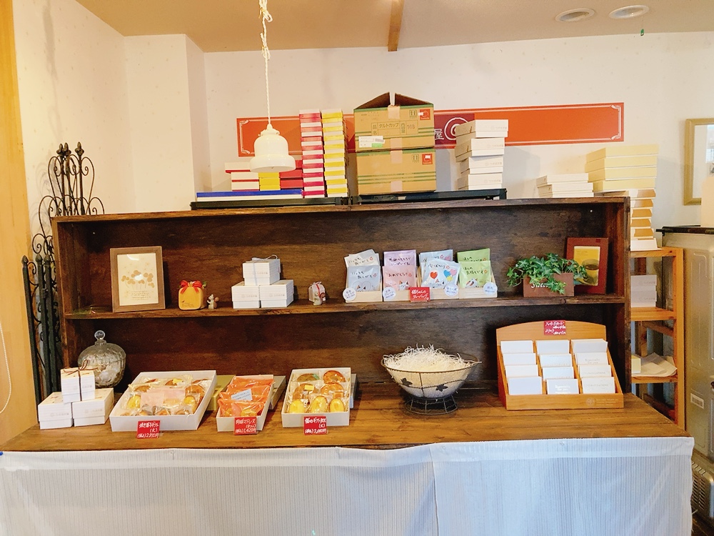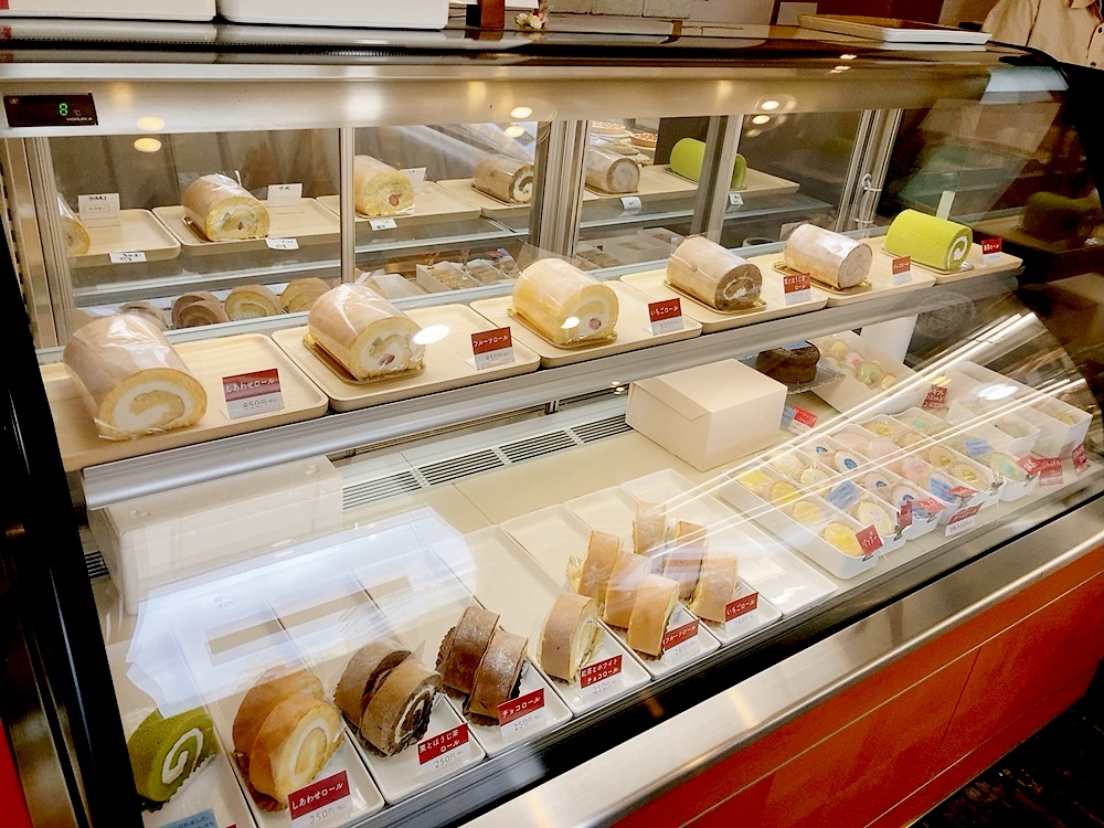 店内にはタルトや焼き菓子など自分用にもプレゼント用にもぴったりな商品もありました🎁✨ オリジナルの猫ちゃんが描かれたギフトBOXも可愛かったです🐱💓いちごロール:1カット280円・1本850円(税込み)