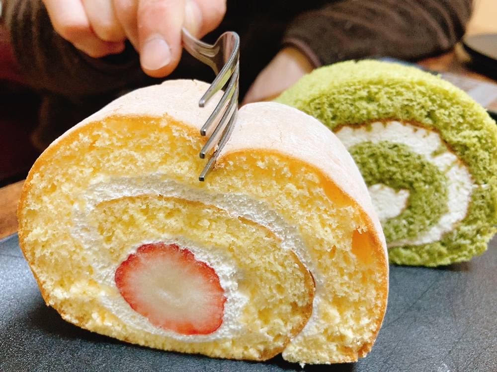 ふわふわのロールケーキには生クリームはもちろん、