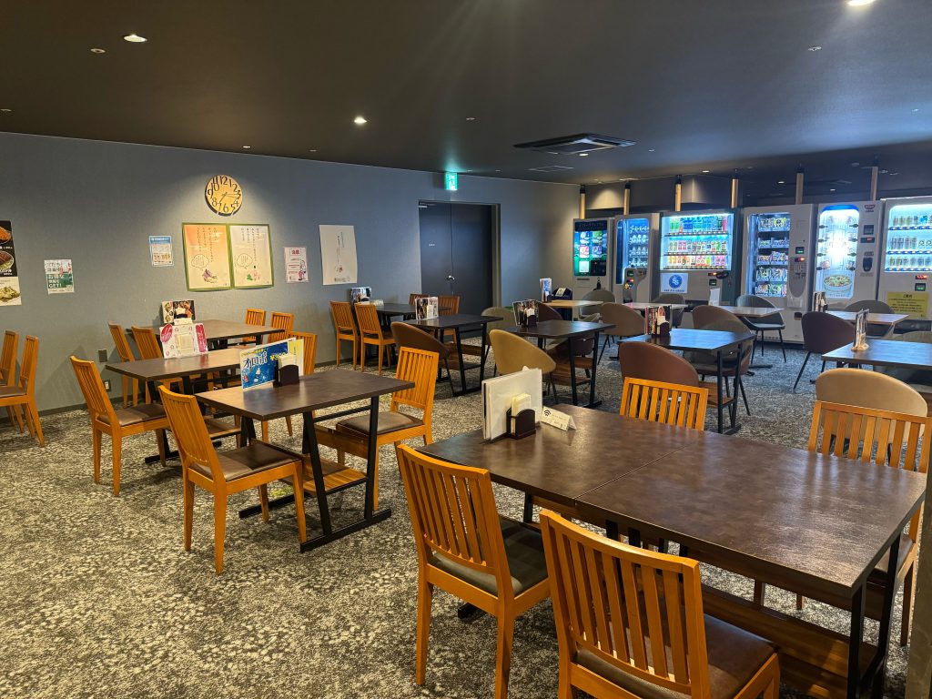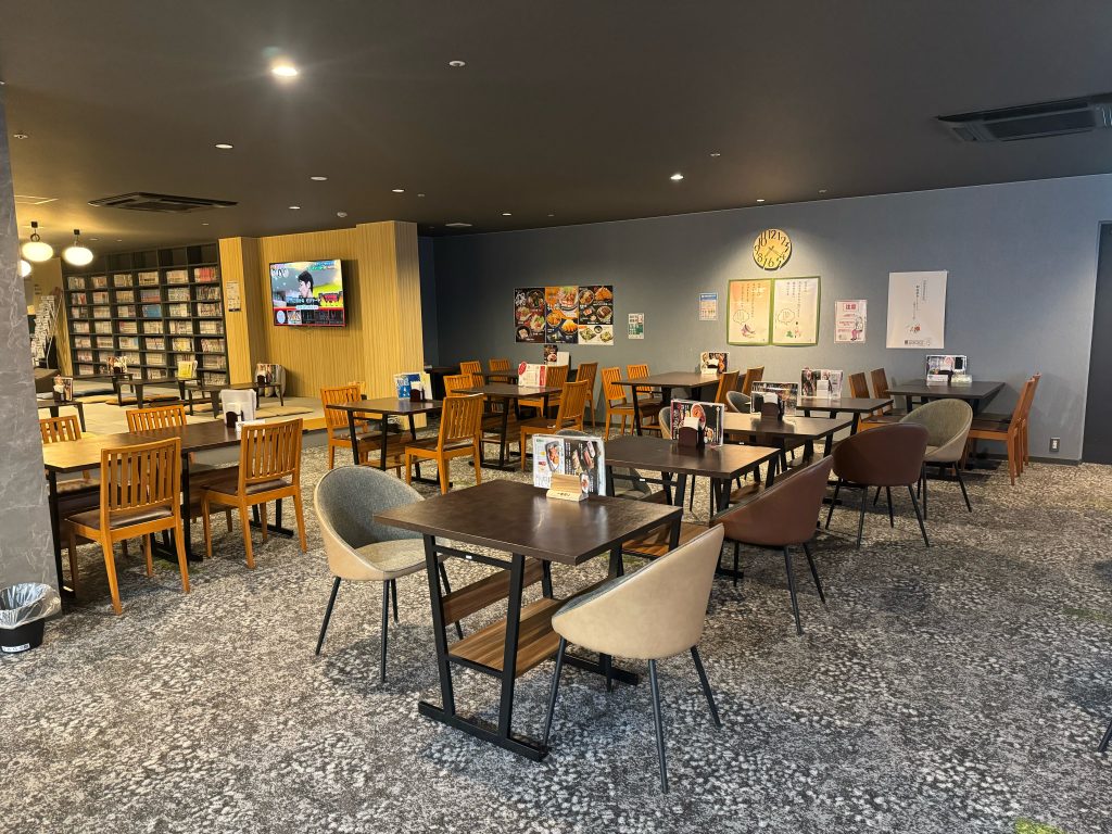 2人テーブル10席、4人テーブル4席、座敷には1人席が7席、4人テーブル6席で約75席あり、とても広くゆったり快適に過ごせます。駐車場は提携駐車場があり、入浴は割引、宿泊者は無料になります。