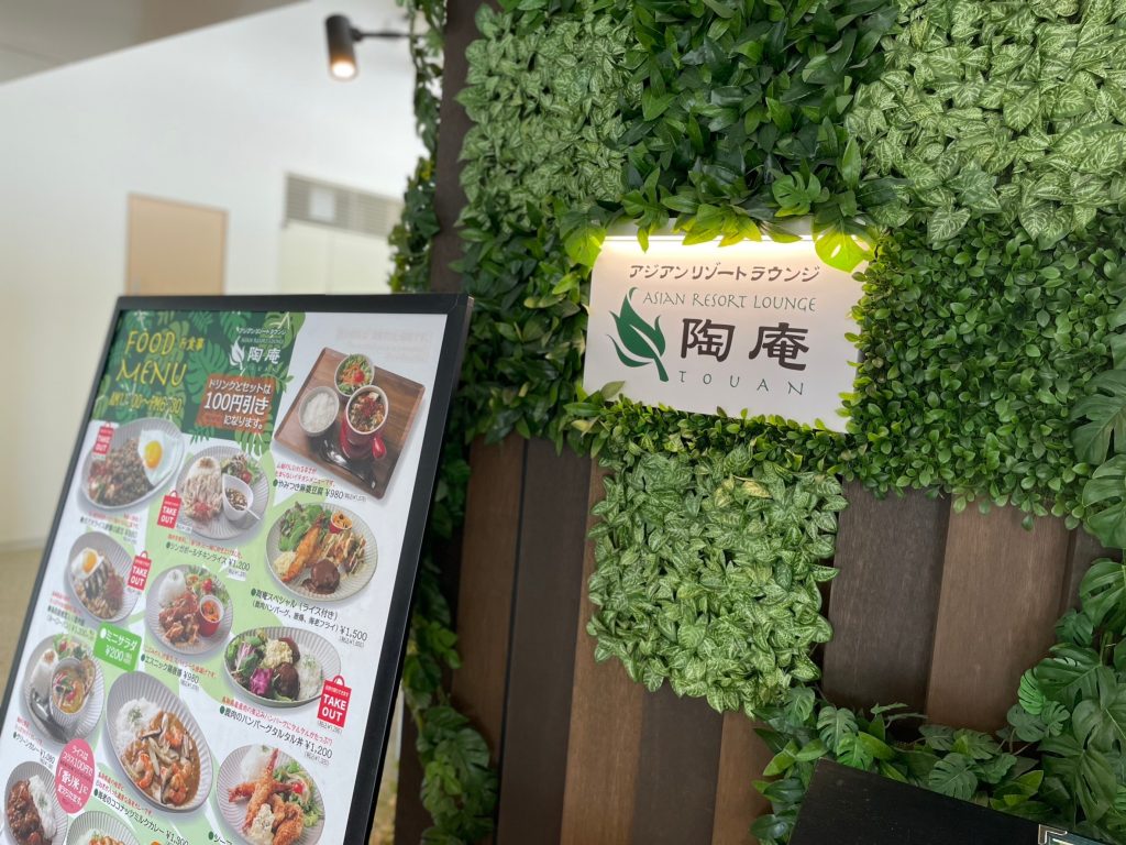 鳥取砂丘コナン空港2Fの「アジアンリゾートラウンジ 陶庵」 空港内とは思えないリゾート感のある店内で、ガパオライスやシンガポールチキンライス・ルーローハンなど、 鳥取県で本格アジアン料理をお楽しみいただけるお店です。