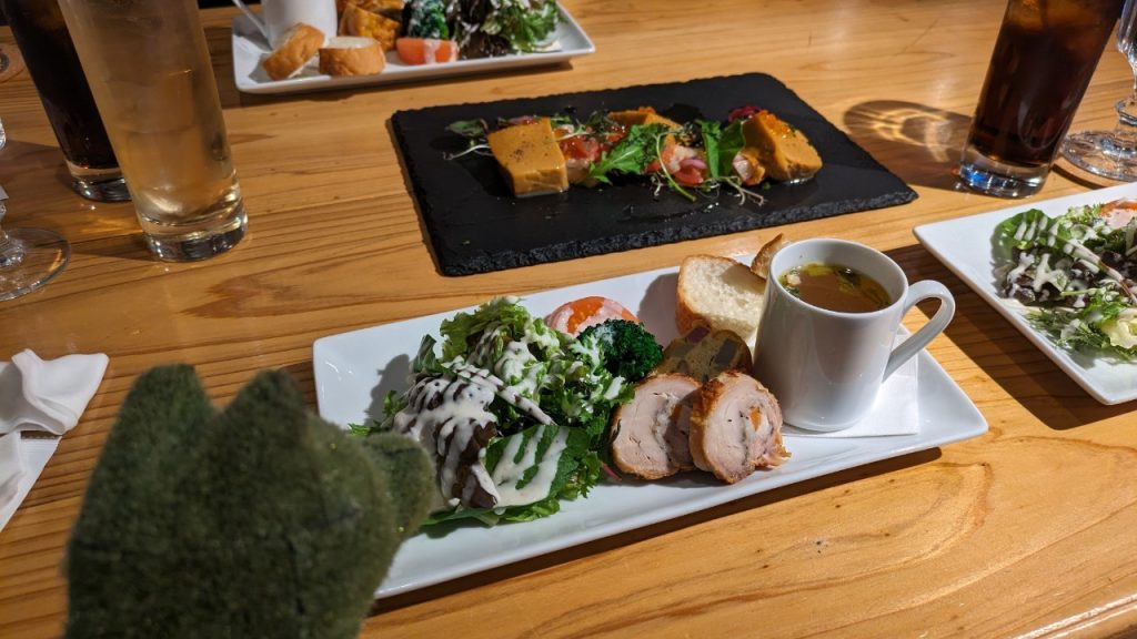 Aセットはパスタが100グラムとサラダ、前菜の盛り合わせなどがついてきてボリューム満点だわん!