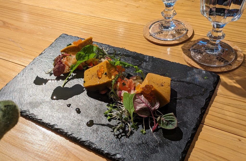 今回いただいたのは、鳥取県で採れたウニを使ったムースにモサエビを添えた「鳥取ウニムースとモサエビのタルタル」だわん!