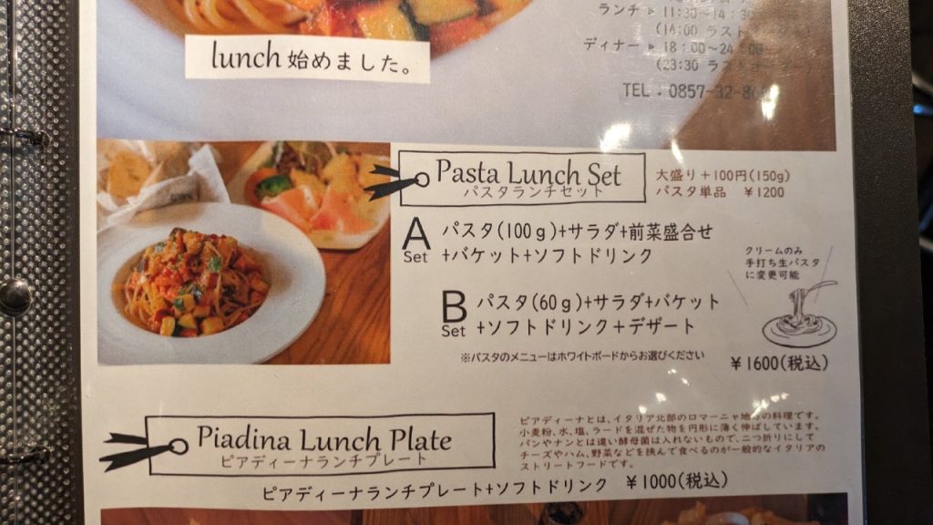 Bセットはパスタが60グラムとAセットより少ないけどデザートが一緒についてくるから女性の方におすすめだわん!