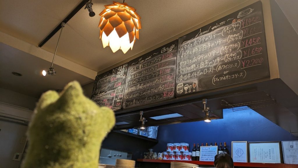 鳥取大学前駅から北に向かって歩いていると、茶色を基調とした外壁と美味しそうなイタリアンのお写真に目を惹かれるピーニャピッコラ…! 店内はカウンターが6席とテーブルが2席(4人掛け×2)だから、落ち着いた雰囲気の中でお料理を楽しむことができるわん!