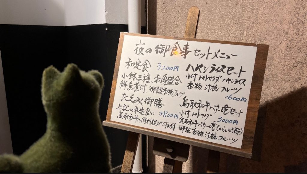わんわん!芝犬だわん! 今日は鳥取市にある大人気のお店、たくみ割烹に行ってきたわん! なんとこのお店は鳥取和牛が食べられるらしいわん...✨✨ くんくん……おや、いい匂いが店内から! 早速どんなお店か覗いてみるわん!