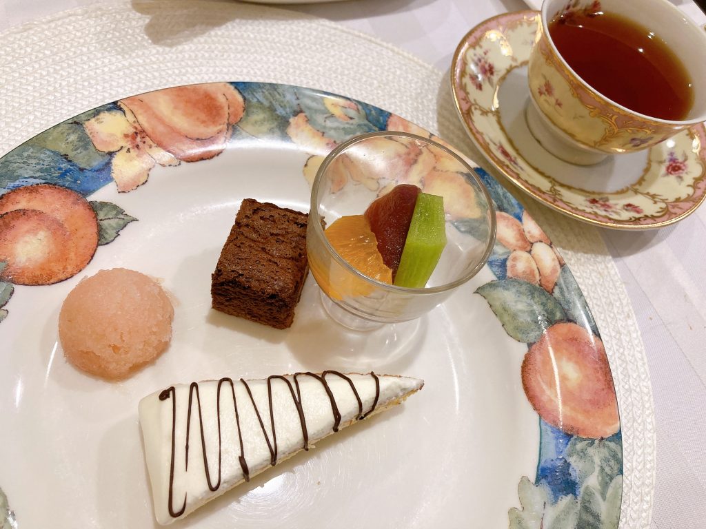 オードブル、スープ、魚料理、肉料理、パン、デザート、ドリンクのランチフルコース🍽