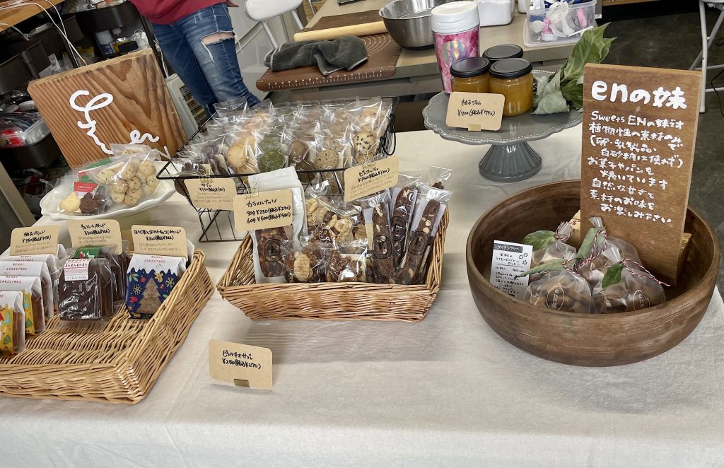 お菓子作りも好きなあんなおです。 大きな目を引く暖簾が目印の小さなお菓子屋さん「Sweets EN(スイーツエン)」さん。 地元食材にこだわったお菓子。 ラッピングもお菓子もオシャレ!
