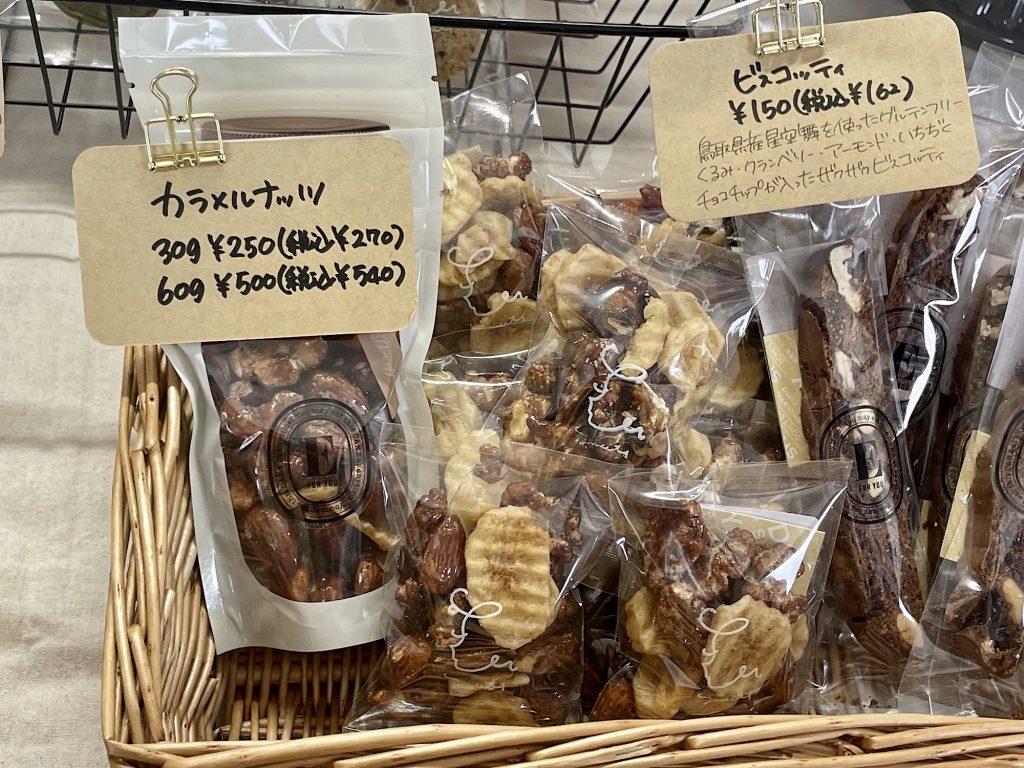 大山バターや鳥取県産「星空舞」の米粉、岸田牧場さんの牛乳など地産地消にこだわった食材を使ったお菓子。