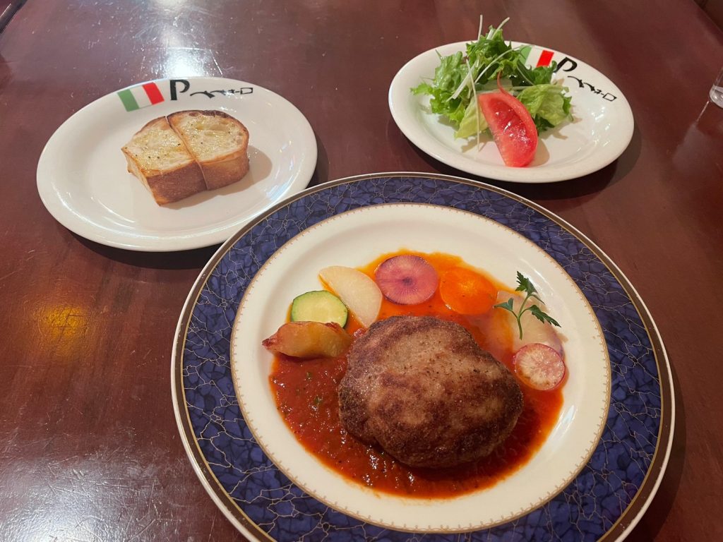 私はハンバーグのトマトソースにバゲットを付けていただきたかったのでバゲットを選びました。