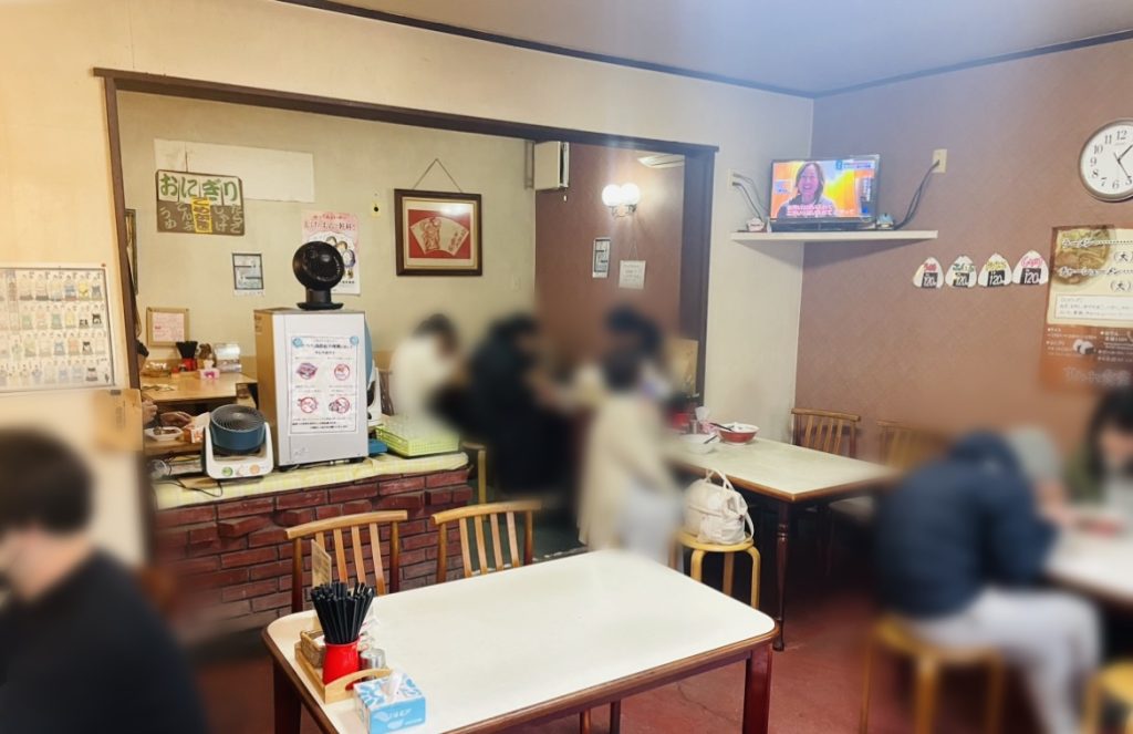 カウンター席が少しと4人掛けのテーブル席が6席ありました! 店内も結構広いので家族連れでも安心です!✨ 駐車場は向かいの公民館の奥側が駐車スペースになっているので車で行く方は注意してください!
