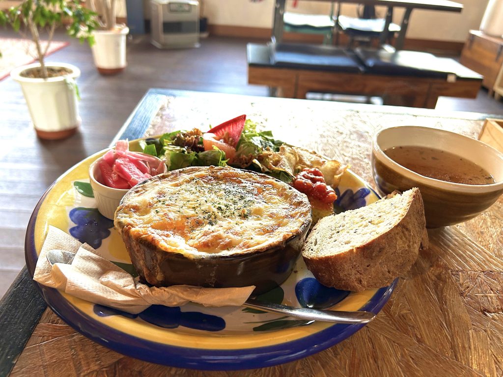 鳥取では有名な「ねばりっこ」を使ったラザニア。