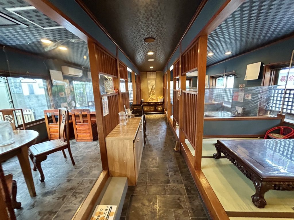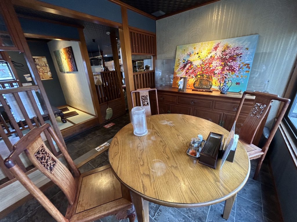 店内は奥行ある広々した空間だわん! カウンター席、テーブル席に座敷スペースと、一人はもちろん、友人やファミリーとでも過ごしやすい店内だわん✨ 今回はおしゃれな絵が飾ってあるテーブル席をチョイスだわん!