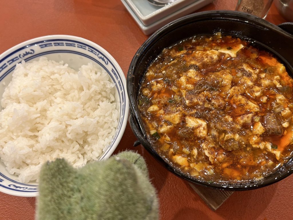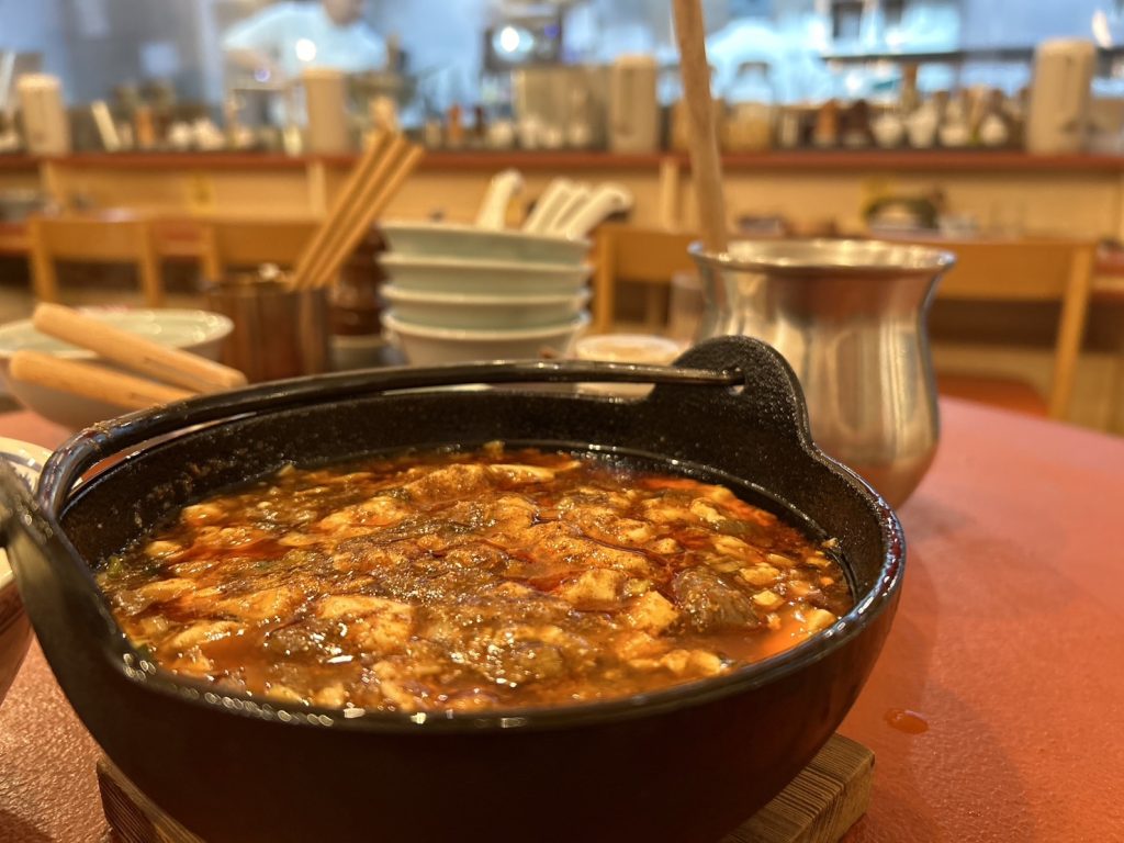 注文して少々…熱々の状態で運ばれてくる牛骨麻婆…!