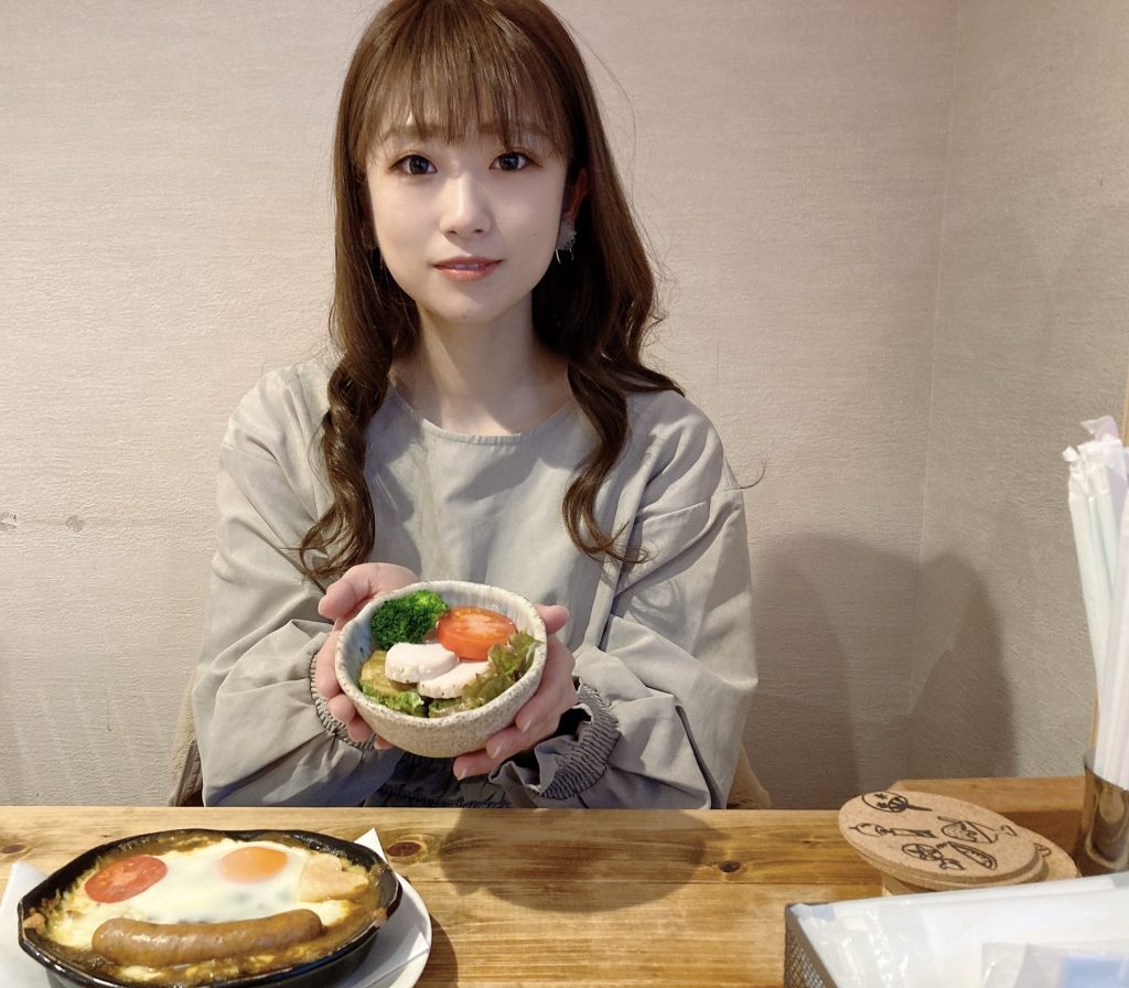 『肉類の中でも特に低カロリー』『高タンパク』な鹿肉。中性脂肪を減少させるDHAやビタミン、鉄分など特に女性には嬉しい栄養素が豊富。特に鉄分の中でも身体に吸収されやすいヘム鉄が摂取できるため貧血予防が期待できます。猪肉も低カロリー、鉄分はもちろん、赤血球の生成やDNAの合成を促したり、神経機能を正常に保ったり、睡眠を促す効果のあるビタミンB12が豊富。また、加熱によってとろけるような食感になる猪肉は、甘味を強く感じつつ、脂身ならではの重さやしつこさがあまりないのが特徴です🤤ヘルシーで罪悪感が無い、むしろ摂取すべき良質な栄養素がたっぷりなジビエ料理。燻製や香草の風味が食欲をそそる、お洒落なお味のハンバーグ。見た目からもわかるように肉厚、とにかく肉肉しい、お肉を充分に堪能できる一品でした🙆♀️◎ご飯は牛骨や野菜のスープで炊かれたもの。セットのサラダには東伯郡琴浦で水揚げされた色鮮やかなグランサーモンがトッピングされていました。(季節によっては境港市で水揚げされたサーモンや、真鯛に変更されます)自家製のお豆腐には触覚も楽しい山わさびを秘伝のタレに漬け込んだものがかけられていました。『五感』で楽しめる、そんなハンバーグセットでした✌️焼きカレー(大山豚ソーセージ、サラダ付き) 1200円