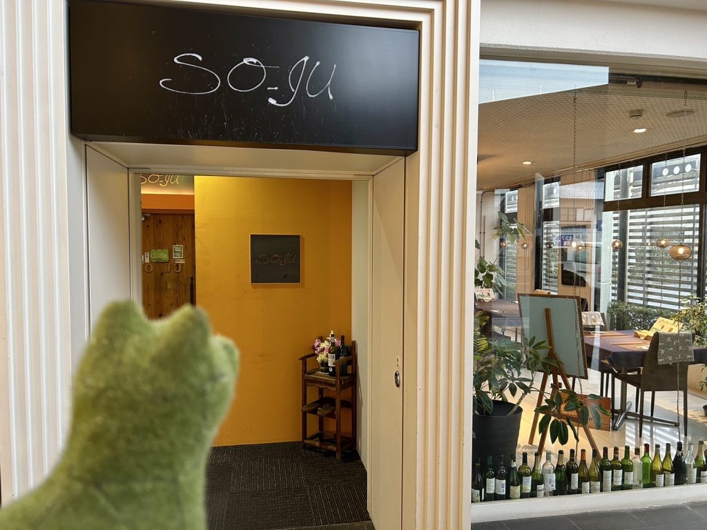 ホテルアクシス内1Fにあるレストラン「SO-JU」。 駐車場からすぐに入口があり、ホテルの入口を入った目の前に「SO-JU」があるわん! 店内はお洒落で広々した空間で、カウンター席とテーブル席があるわん!