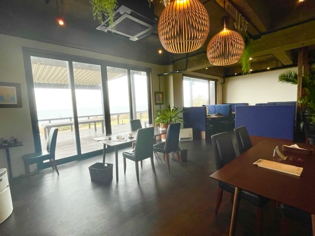 時間ごとにさまざまな海の表情を見せてくれる、いつ行っても絶景のカフェレストラン。