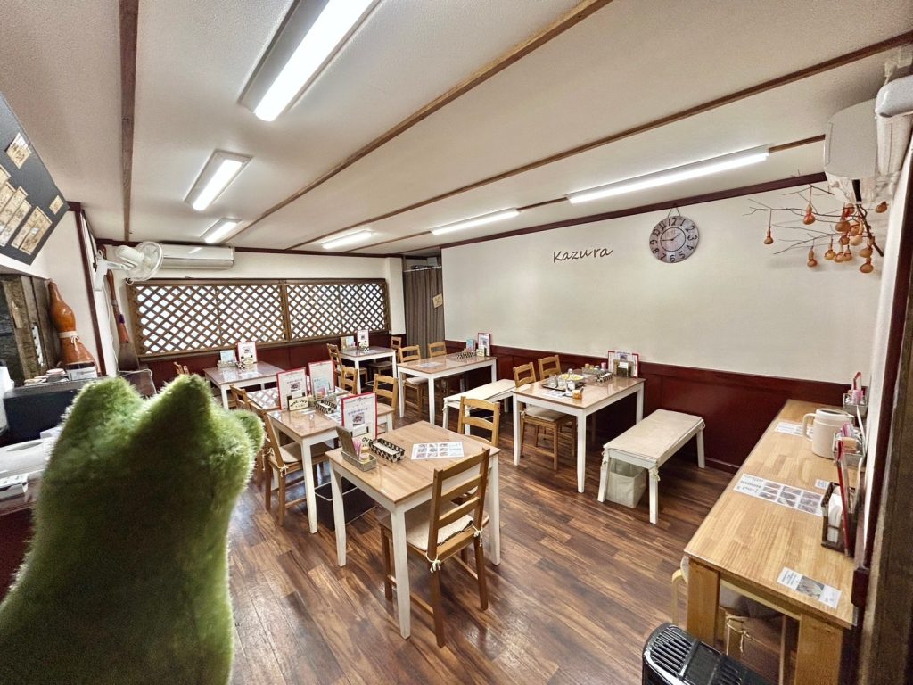 店内は階段を登った二階にあるわん! 通り過ぎてしまわぬように、店前の看板を要チェックだわん! 階段を登り扉を開くワクワク感、どこか隠れ家的な雰囲気があるわん✨ 広々とした清潔感のある店内にテーブル席がずらり! いつでも安心して訪れられる空間だわん!