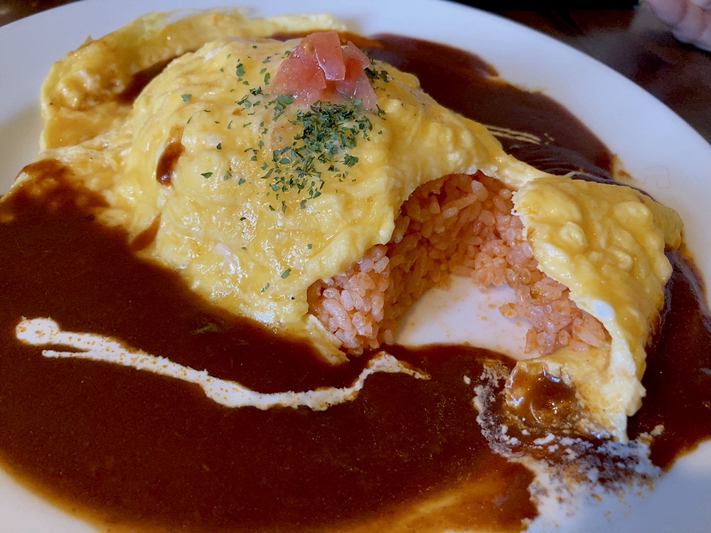 喫茶店のような、落ち着いた雰囲気のあるお店。2人掛け、4人掛け、6人掛けのテーブル席がありました。数席、個室で喫煙席がある『エリア分煙』をしているお店です。分煙前は喫煙席も多く、料理のボリュームもあったため男性のお客様が多かったようです💪!!分煙、昨年グルメバラエティ番組で特集されてからは『子供連れの家族』『若い女性』のお客様も増えているとのこと👨👩👧おうかがいした日も、子供連れの家族からカップル、女子会など幅広い年齢層の方がいらっしゃいました☺️🫶星空舞を使用したふわとろオムライス(デミグラスソース) 1040円
