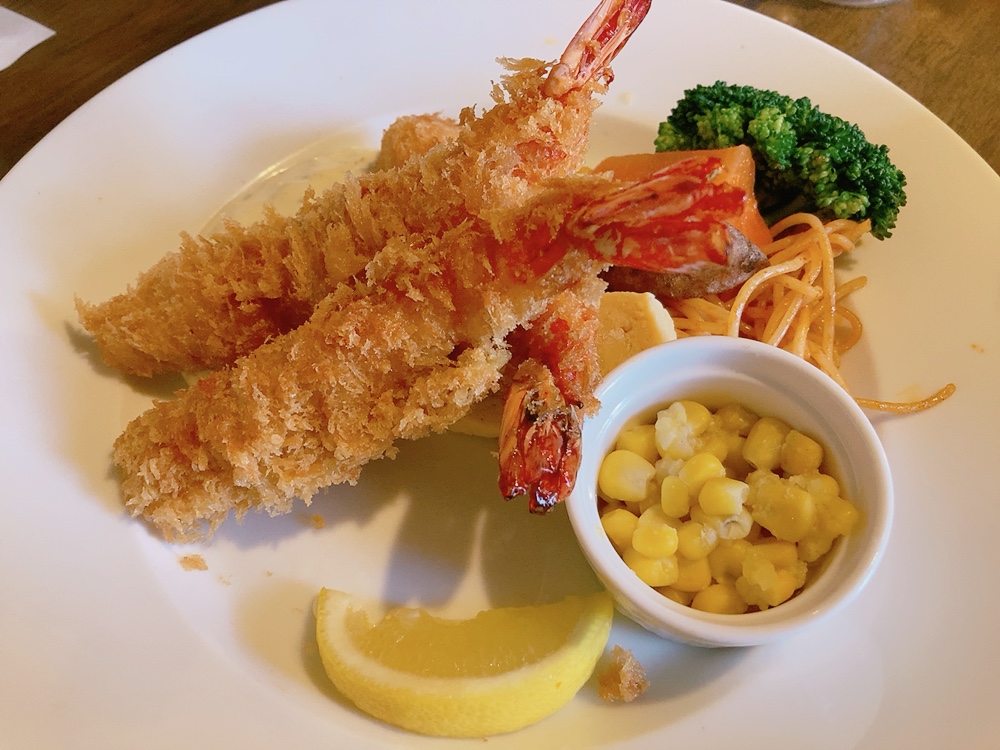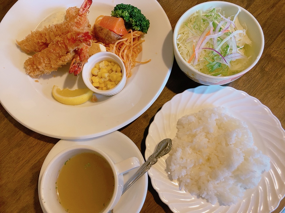エビフライ以外にも、『豚ロースカツ』『豚の生姜焼き』『若鶏の唐揚げ』『ハンバーグ』『焼きそば』『牛ロースステーキ』ランチなど、オムライス以外も充実のラインナップ。オムライスとお好みの単品もセットでいただけるので、『オムライス+エビフライ』などボリューム満点💯満足感あるランチタイムが過ごせちゃいます。また、粒はしっかり。適度な粘りがあり、はね返る食感の星空舞。冷めても食感が変わらず、甘くて美味しい🍚!!特大エビフライとの相性も抜群でペロリと間食しました。まとめ こんな人におすすめなお店でした。