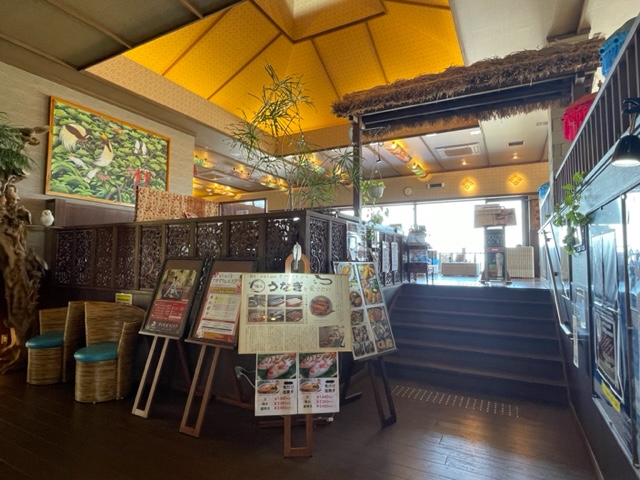 店内はアジアンムードあふれる雰囲気。 リゾート地へ旅行に来たような開放感が味わえます🌴 レストランは、テーブル席と、一部ソファ席もあり。 間隔が広くとってあるのも嬉しいですね! 窓も大きく、目の前に広がる日本海を一望! この日は天気が良く、海もきれいに見えましたよ🏝