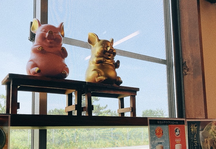 国道431号線から日本海方面に入ると茶・赤・白色、豚さんが目印のお店が見えてきます🐷