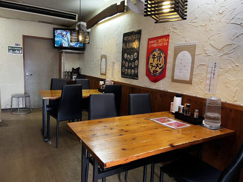 テーブル2席・カウンター座卓3席・イス6席小さなラーメン店なのでお昼時は並ぶ覚悟がいるかも・・・。