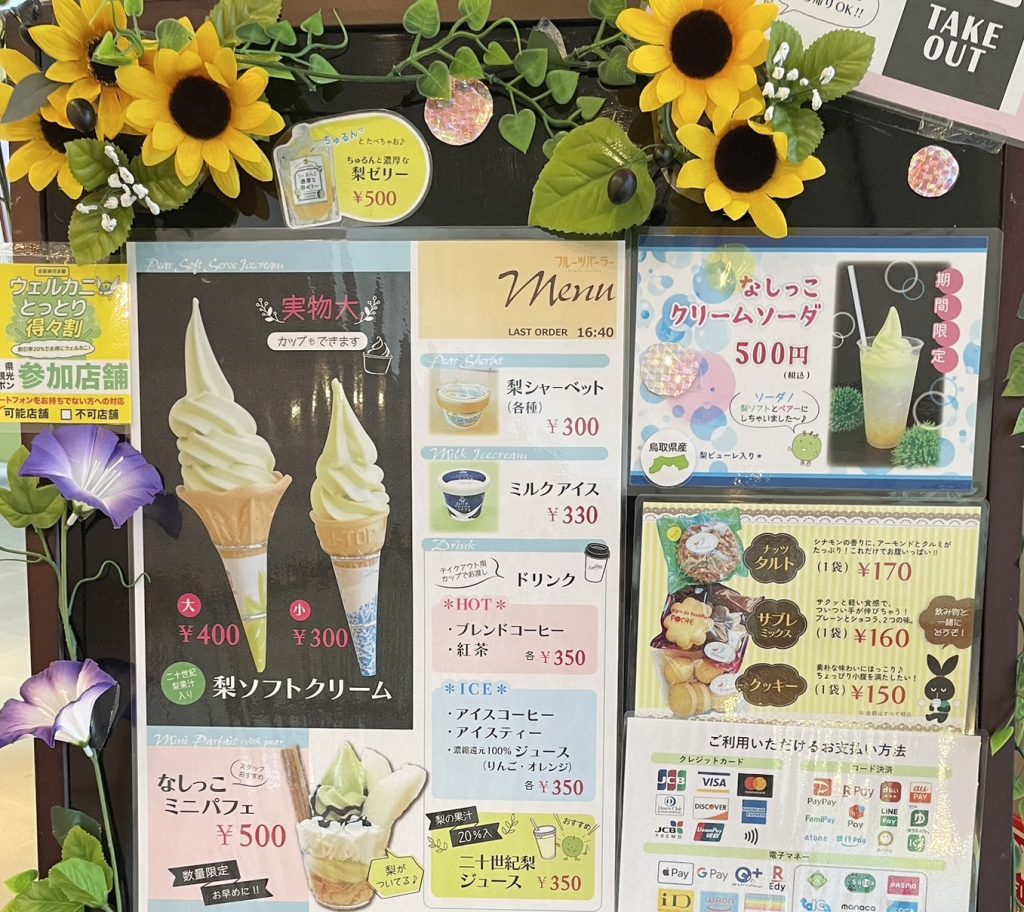 皆さんこんにちは! 今年度からとりたべインフルエンサーに就任いたしました、田中舞です☺️ たくさん鳥取県の魅力をお届していきますので、よろしくお願いいたします! そんな私の初となる取材先は【なしっこ館フルーツパーラー】さん🌟 私の地元中の地元! 小さい頃から何度も通っている場所です✨ さて! 鳥取県といえば梨。 梨といえば鳥取県。 ですよね🥳🌈 今回は、イマが旬の梨を使用したソフトクリームをいただきました。