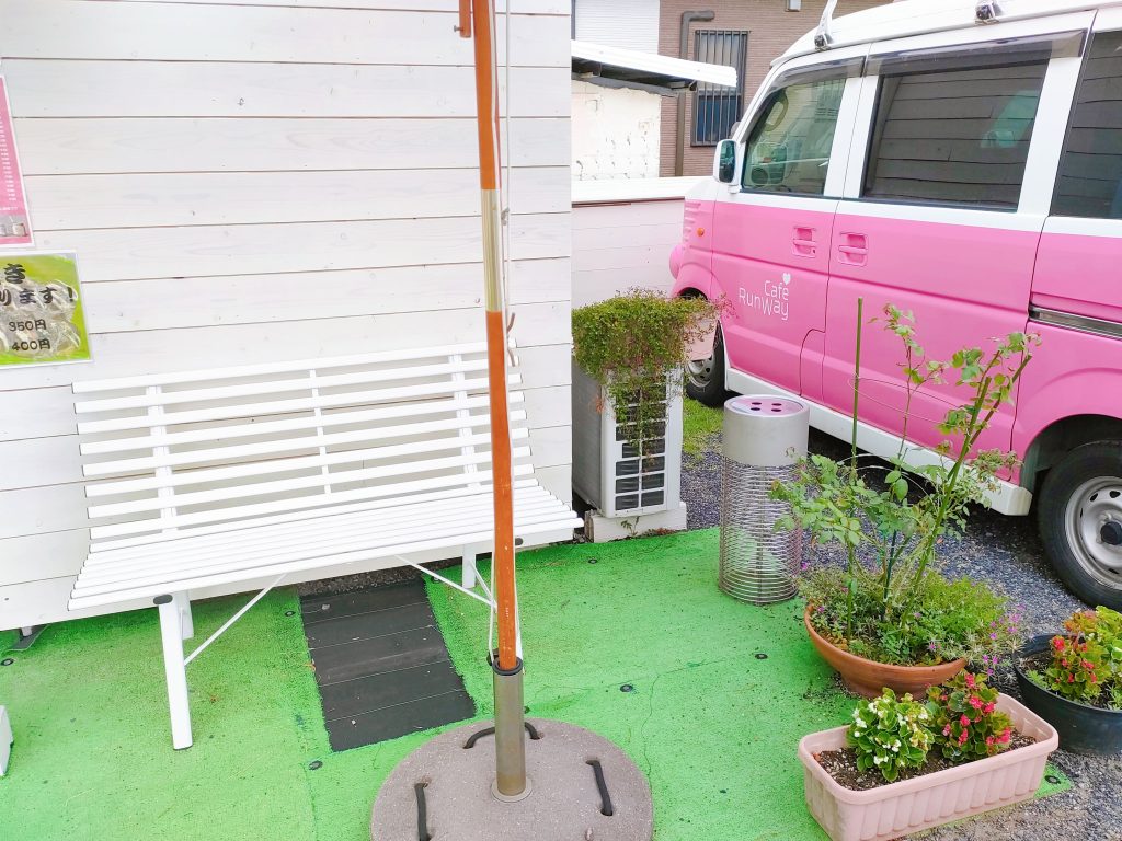 テイクアウト専門店のCafe Runway。 ピンクを基調としたお店の外観は、インパクト大! お店の前には、購入した商品をすぐに食べれるベンチなどもありました。 お店の隣には可愛いキッチンカーも停まってて、 まさにインスタ映え~! 気軽に立ち寄りやすい雰囲気でしたよ♪