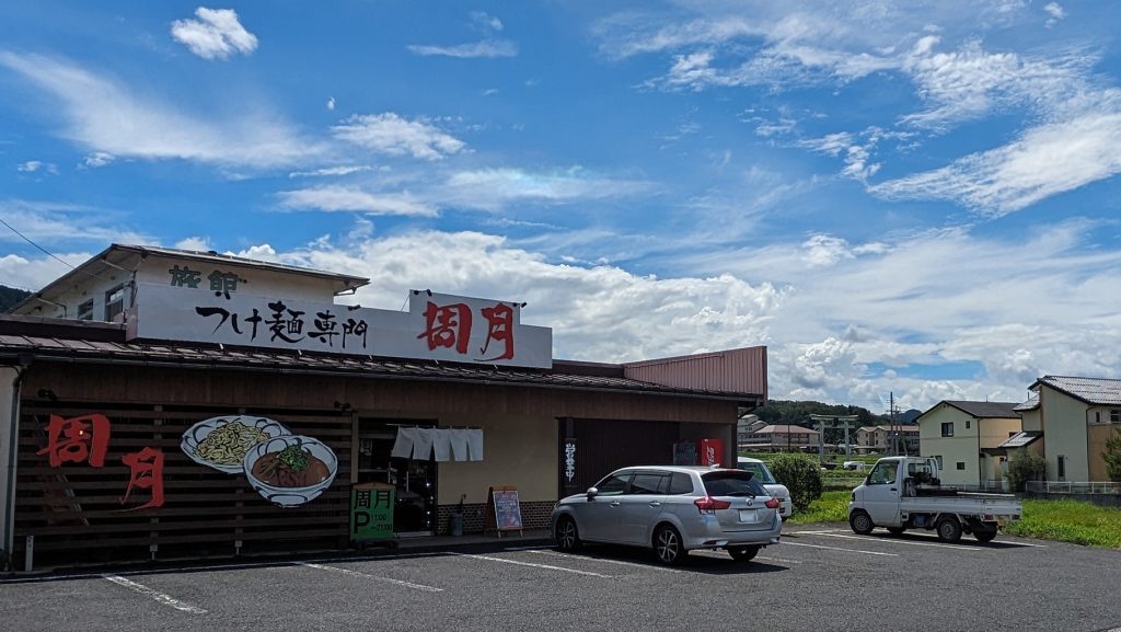 【駐車場】は広く車も停めやすいです。 「周月」の大きな看板があるのでわかりやすいです。 【店内】はとっても清潔感があって空調もきいています。さすが新店舗! カウンター席、ボックス席もあって広々。 ひとりもよし、家族もよしですね。 平日開店直後に行ったのに、すぐに人でいっぱいになりました。