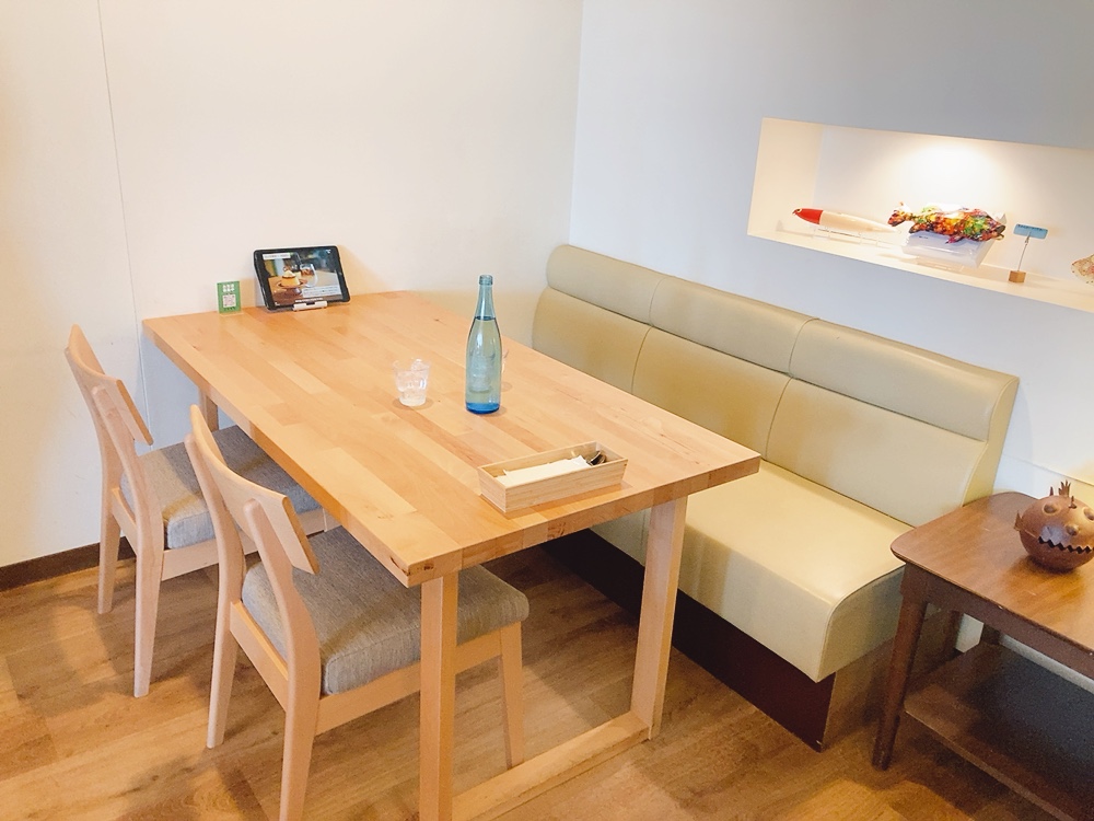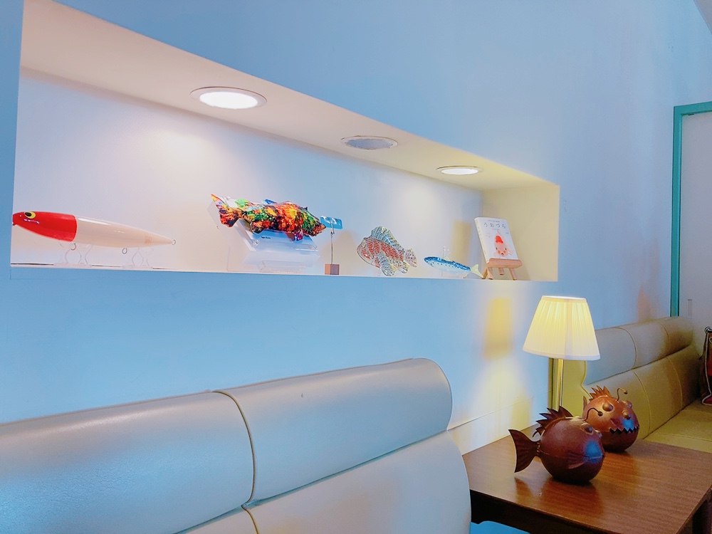 遠くからでもよく目立つ、インパクト抜群で一度見たら忘れなれない『灬』がお店の目印。 お席は、カウンター席、ソファー・テーブル席、半個室・個室席があり、お一人様~カップル・女子会など幅広い客層の方がいらっしゃいました。店内は、魚の置物、観葉植物、白・緑・青を基調とし、シンプルかつ清潔感のある空間。『まるで海中にいるような』そんな雰囲気も感じることができます。お店の一番人気!魚ノ哲学定食♡ 1385円(税抜き)