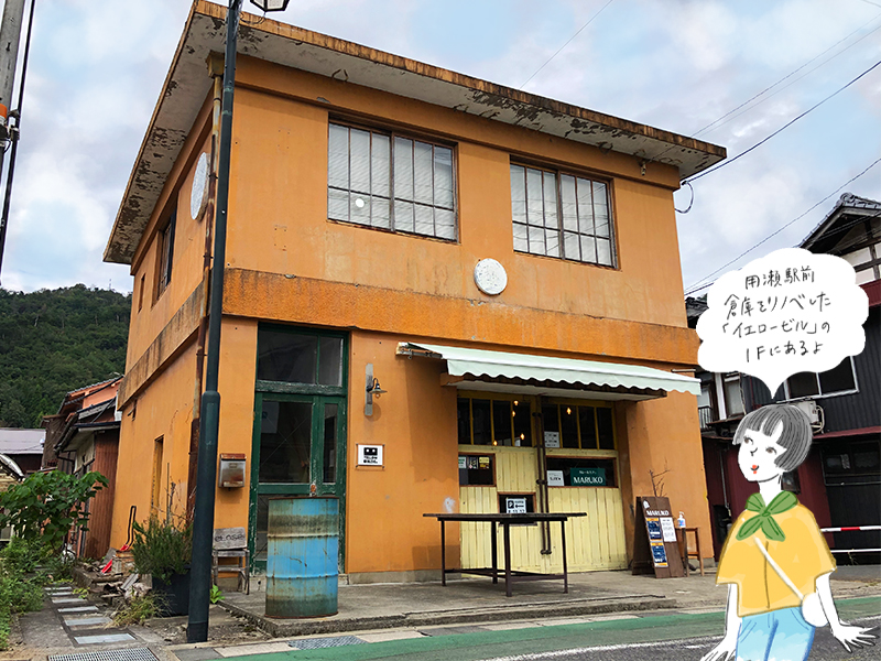 こんにちは、鳥取市在住イラストレーターの伊吹春香です。 今回取材するのは本格スパイスカレーが楽しめる「MARUKO」さん。 用瀬駅のまん前にある、レトロな建物の1Fにお店を出されていますよ。