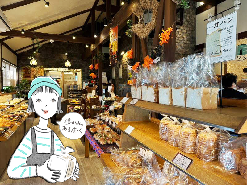 こんにちわ、鳥取市在住イラストレーターの 伊吹春香です! 今回は鳥取市立川町にあるパン屋 「スペイン石窯 パンの家 ボノス」さんに伺いました! 定番のパンからハード系、 お子様向けやガッツリ系の調理パンなど、 幅広いラインナップが楽しいパン屋さんです🥖🍞 自家製酵母を使用した手作り生地を、 スペイン製の石窯(スペインの職人が来日して組み立てたそうです!)で焼く本格パンは、 皮はカリッと、中はもっちり✨ お店の作りもレンガを使ったり煙突があったりとなんだかメルヘンチック。 いろんなところにこだわりを感じます!