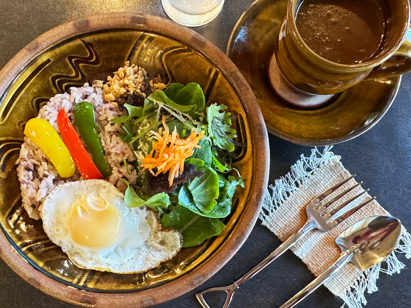食器も青谷の窯元・山根窯さんのものを使用されたり…、