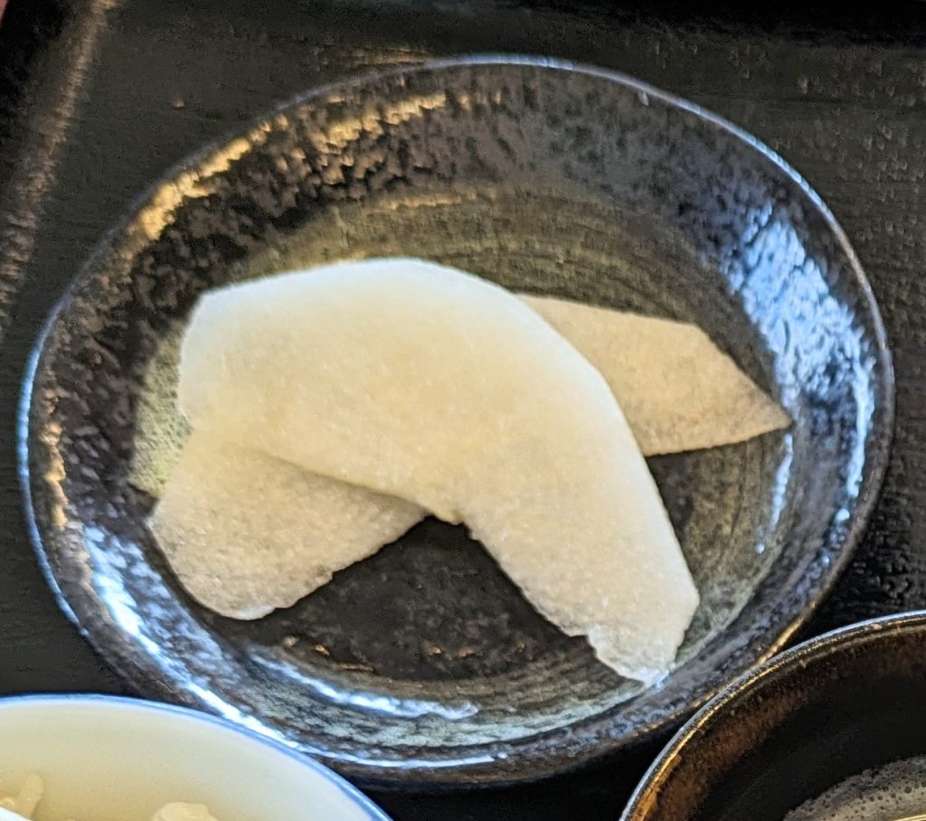 そして、蕎麦だけでなく日替わりのおこわと梨も魅力的でした。今回はさつまいものおこわでさつまいものホクホク感と甘さが美味しい逸品でした♪梨は自家農園で丁寧に育てられたその季節の梨が味わえて甘さも食感も最高でした♪