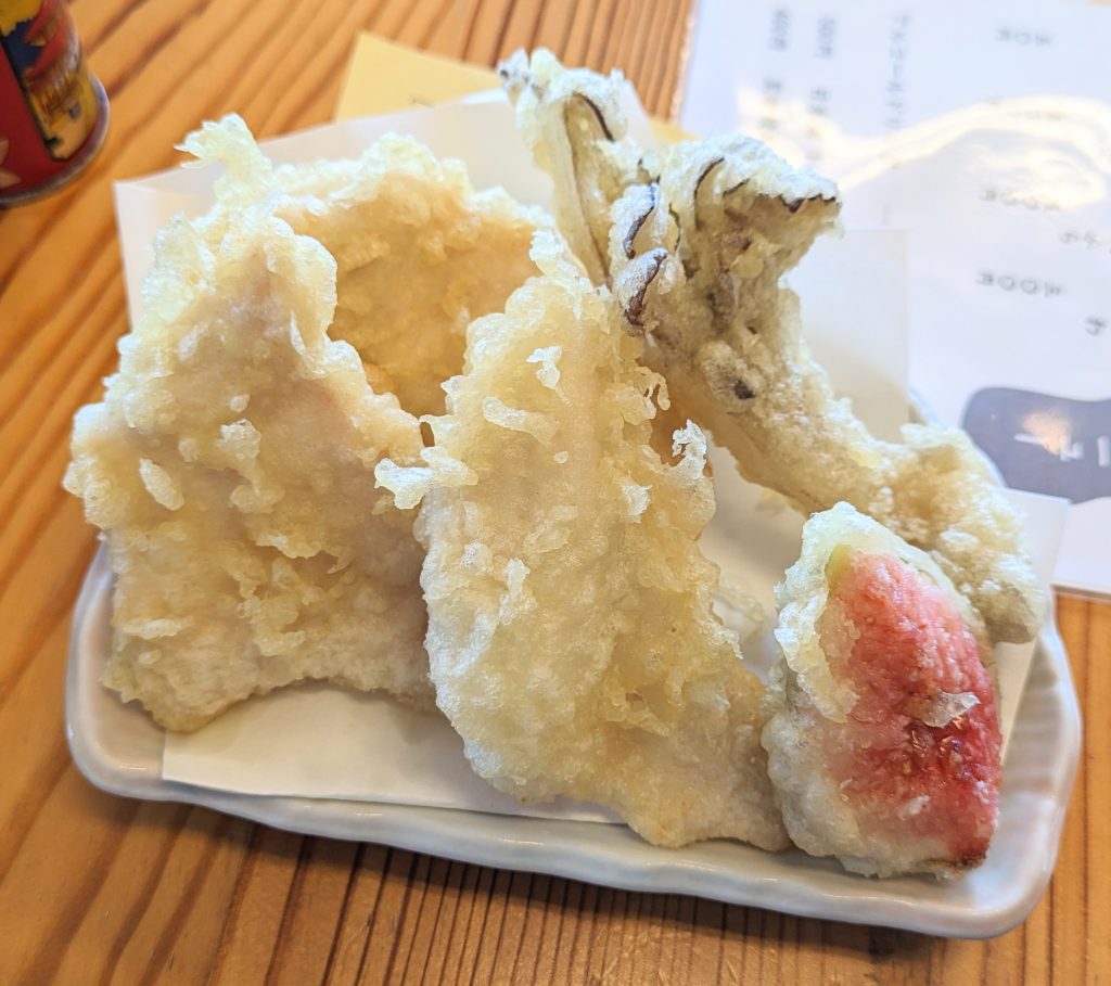 この日は舞茸といちじくの天ぷらも付いていて舞茸は旨味も抜群でしたが、驚いたのはいちじくでした。元々甘いいちじくが揚げられた事で甘味が増し美味しい逸品でした♪