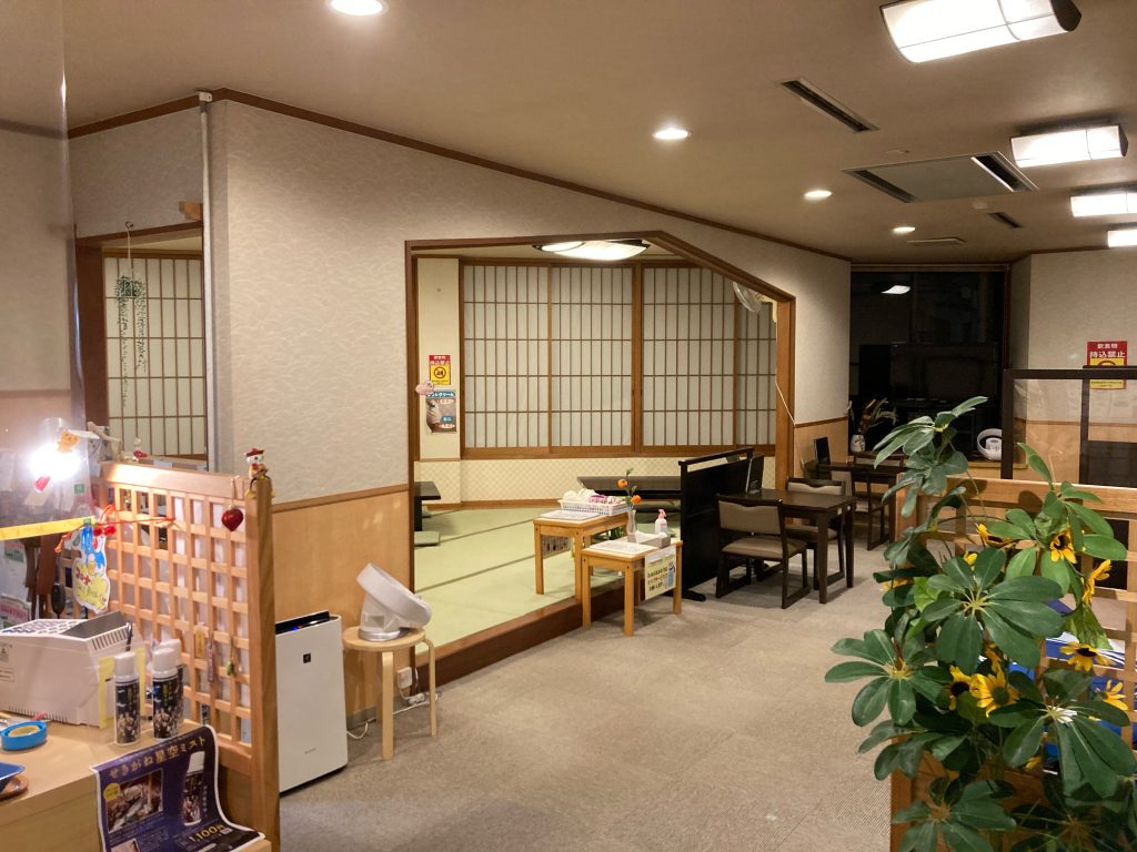 玄関から右側に『白金食堂』さんの看板が見えます。 4人テーブル3席、2人テーブル2席、和室には6人テーブル3席、4人テーブル1席で約40席あります。 畳に足をのばして食事出来るのもいいですね。 3世代のご家族から、高校生の団体まで、幅広いお客さんで閉店時間まで賑わっていました。