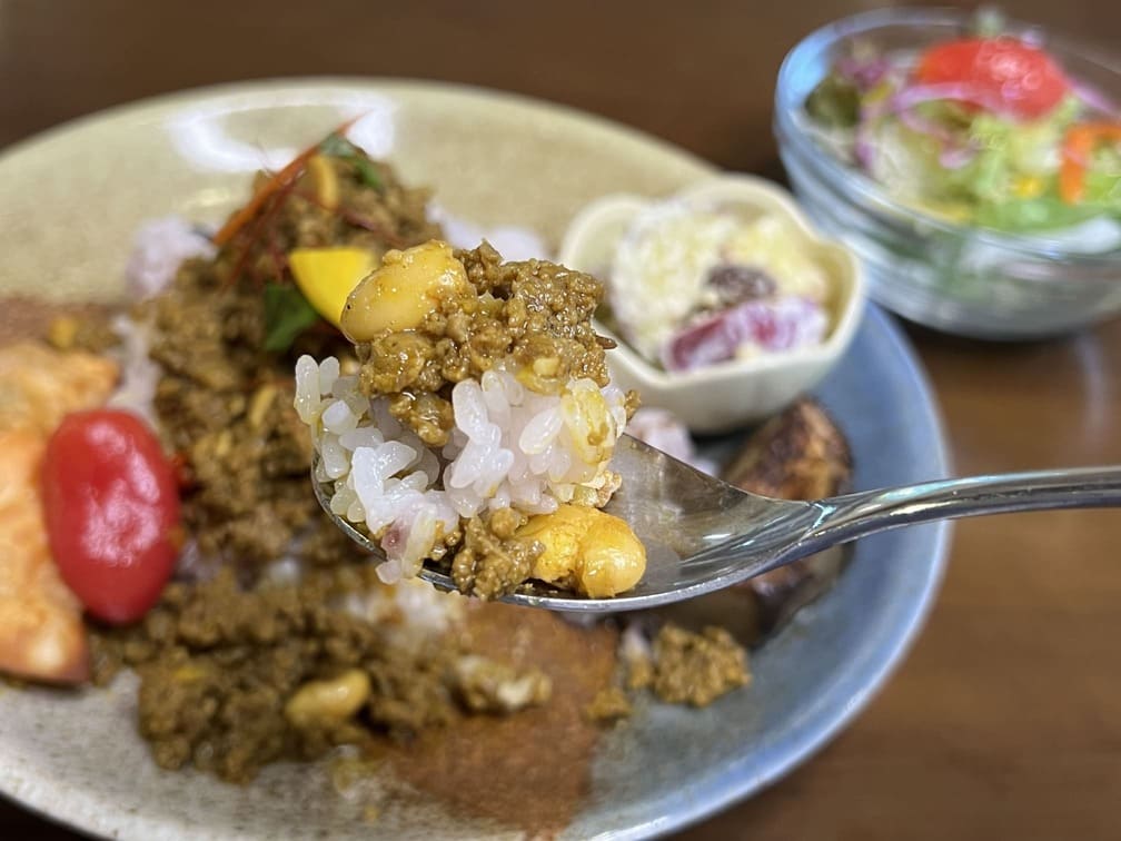 辛さを大豆のほんのりとした甘さがキーマカレーの味を引き立ています。