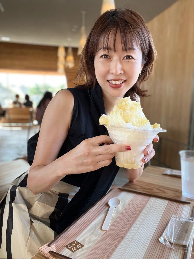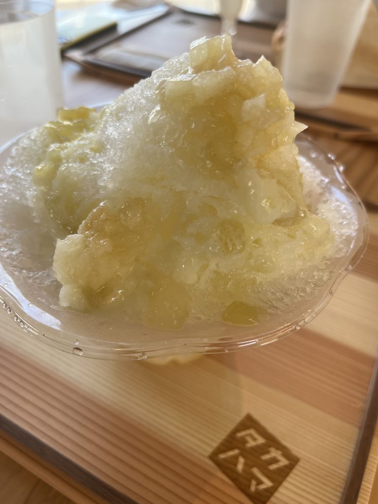 鳥取名産の20世紀梨のシロップは、サッパリした甘みで、ゴロッと梨の果肉もアクセントに♪氷もサラサラで、火照った体をクールダウンしてくれました♡夏の砂丘にぴったりのスイーツですね。