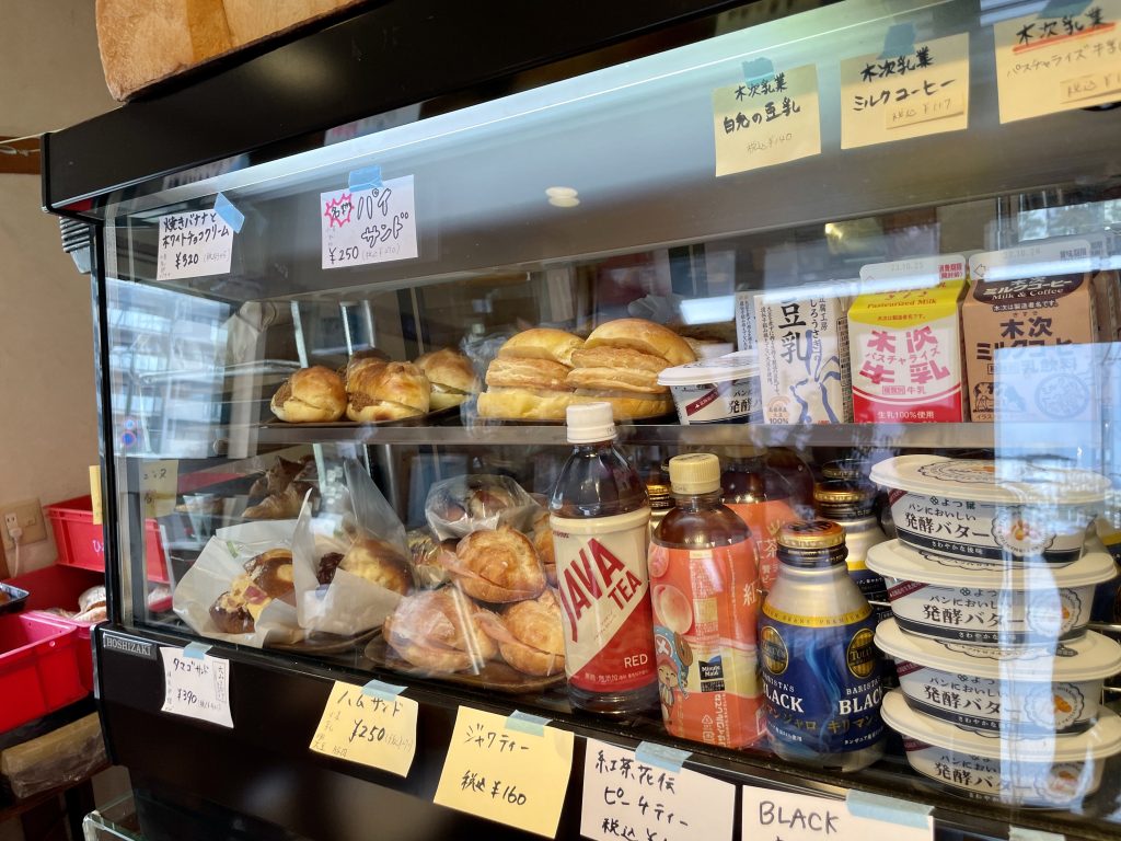 冷蔵ショーケースもあり、サンドイッチや飲み物、バターも並んでるわん✨