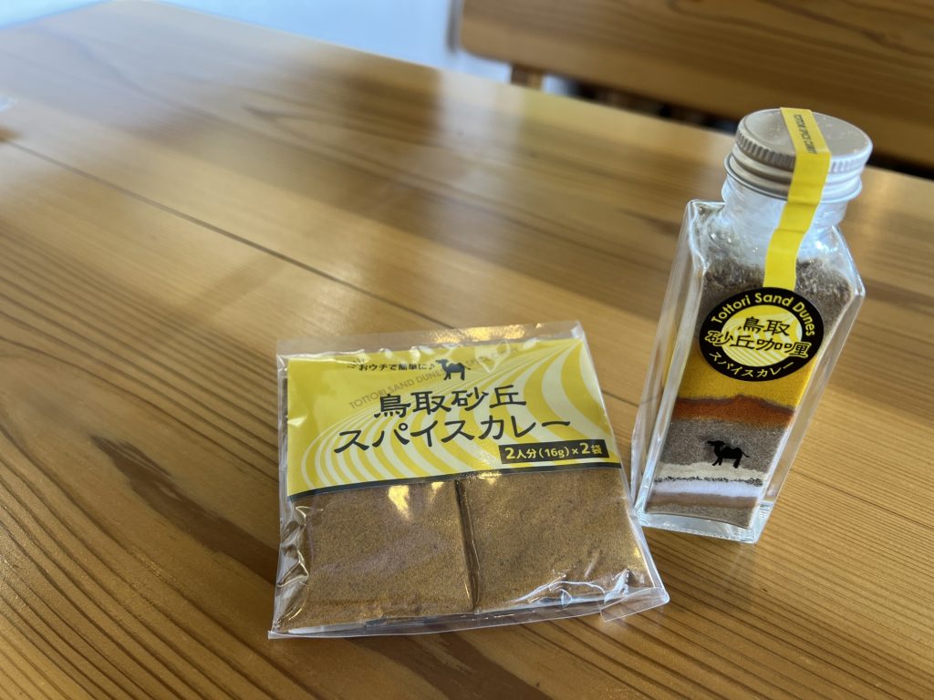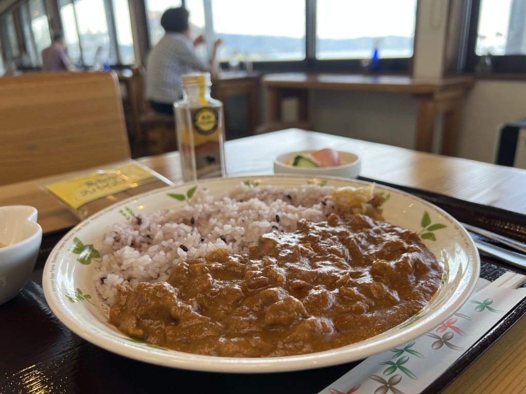 『自家製スパイスカレー』グルテンフリーで作りスパイスの香りも程よく鳥取県産のショウガパウダーを使い味を調えてあるそうです。ごはんには古代米が使ってありカレーのごはん特有のパサつきもなく美味しく頂きました。
