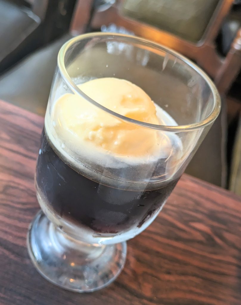 バニラアイスがトッピングされたコーヒーゼリーは大きなグラスに入っていてコーヒーの味わいがしっかり感じられる喫茶店の美味しいコーヒーゼリーでした♪