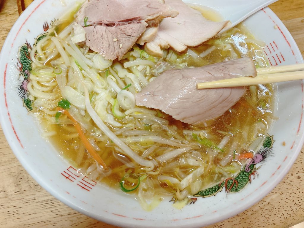 油で炒めた野菜の旨味と甘味がスープに溶け出してさらにおいしさが加速する!チャーシューはしっかり下味が付いていて、噛み応えのあるやわらかさ!