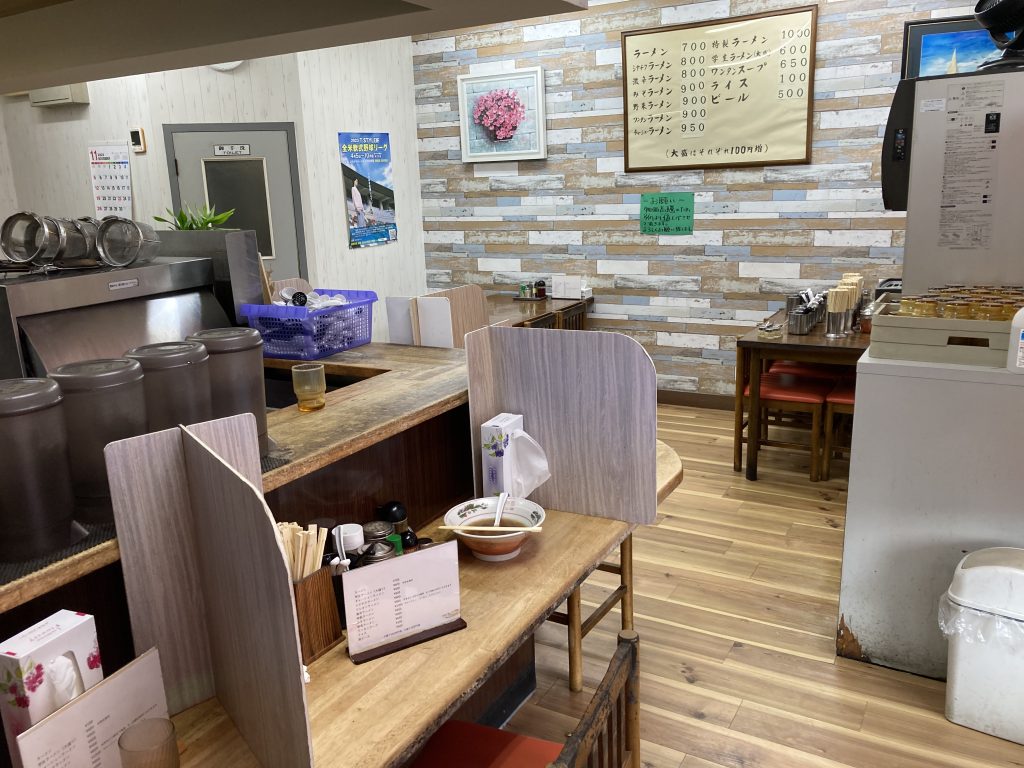 営業時間は11時~15時のランチのみですが、14時に行っても既に5人程外で行列をつくっていましたが、10分ほどで店内に案内していただけました。 店内は4人テーブルが2つ、カウンターが9席。両サイドに衝立がしてあり、お一人様でも隣が気にならずにラーメンがいただけます。 卓上にはコショウなどの調味料、箸、蓮華、ティッシュ。 スタッフは女性3人で店内に優しい女性店員の声が響いて活気が良い雰囲気です。 客層は子連れファミリーや年配女性、男性のお一人様など男女問わない印象です。最近では女性1人のお客さんも増えているのだとか。