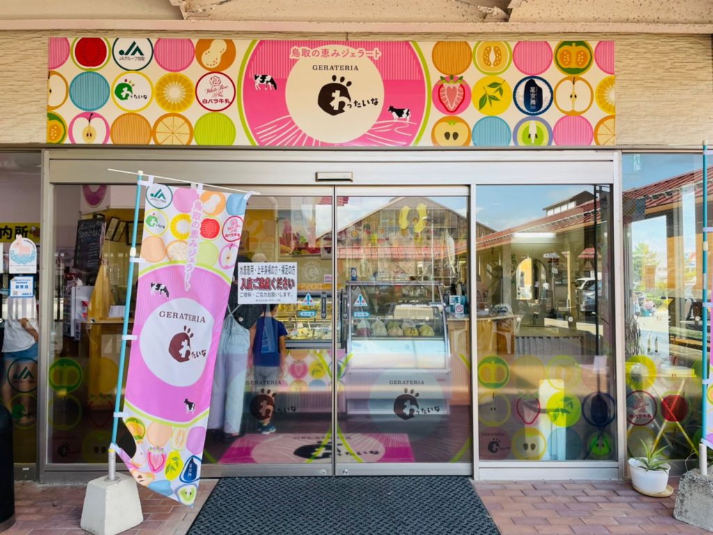 鳥取市賀露町にある「地場産プラザわったいな」直営のジェラート専門店 「ジェラテリア・わったいな」さん。毎日手作りされる旬の野菜やフルーツを使ったジェラートは、地元の方はもちろん、観光客の方にも人気です。