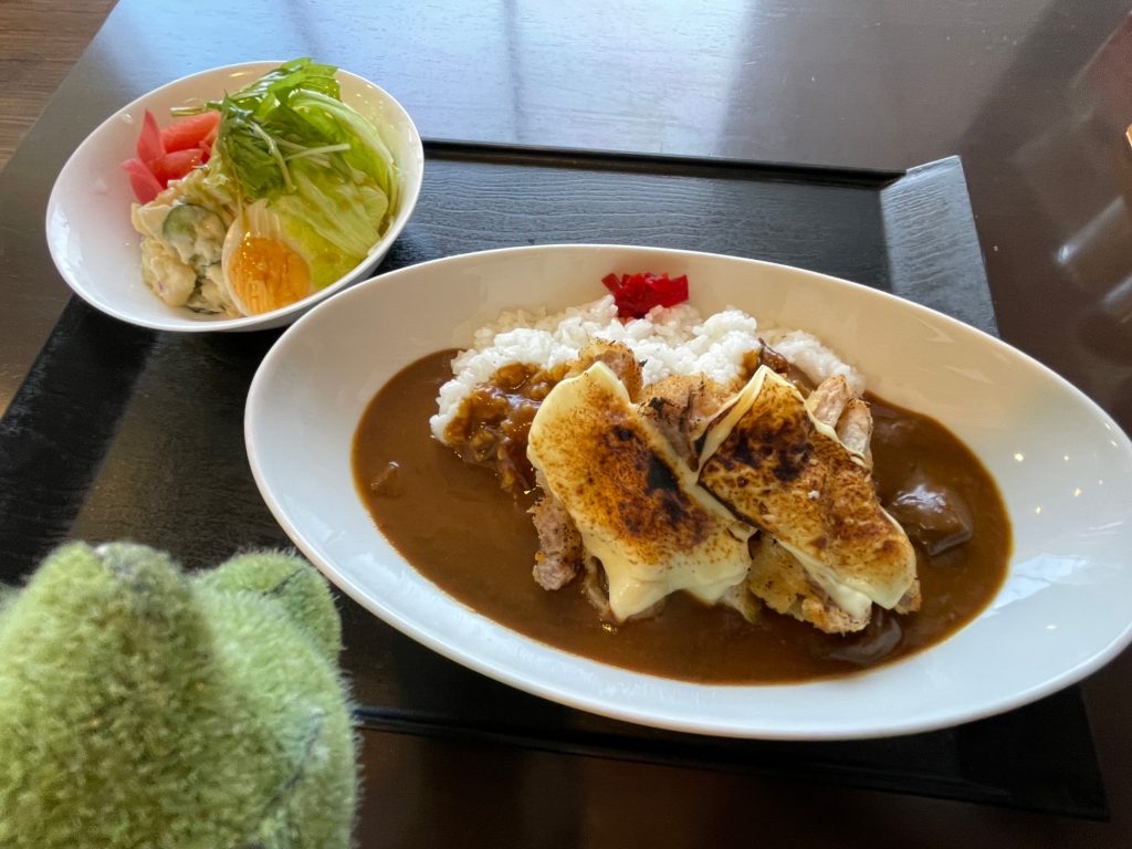 大きな大山どりの唐揚げが、ドカーンとのったカレーライス。