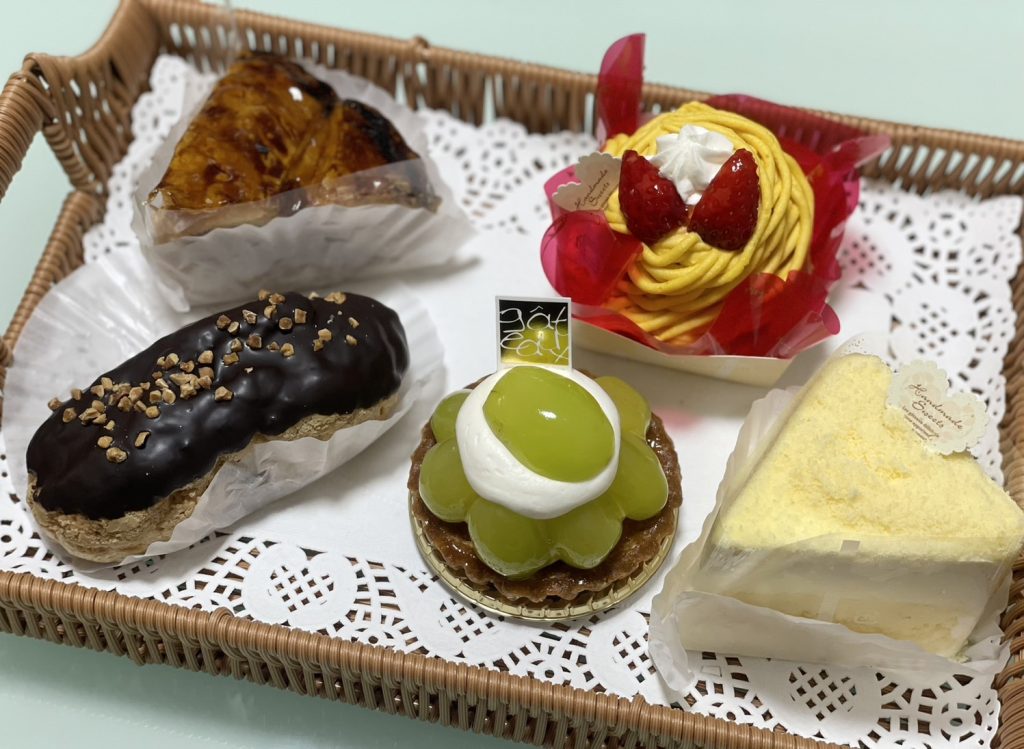 エクレア/りんごパイ/シャインマスカットのタルト/かぼちゃのモンブラン/ダブルチーズケーキ/絞りたて手作りソフトクリーム(とちの実)