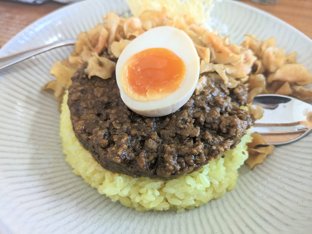 「黒カレー」ベースに猪の粗挽き肉を味付けした臭みなども全くない食べやすい旨みたっぷりの絶品キーマカレーでした♪(グルテンフリー)