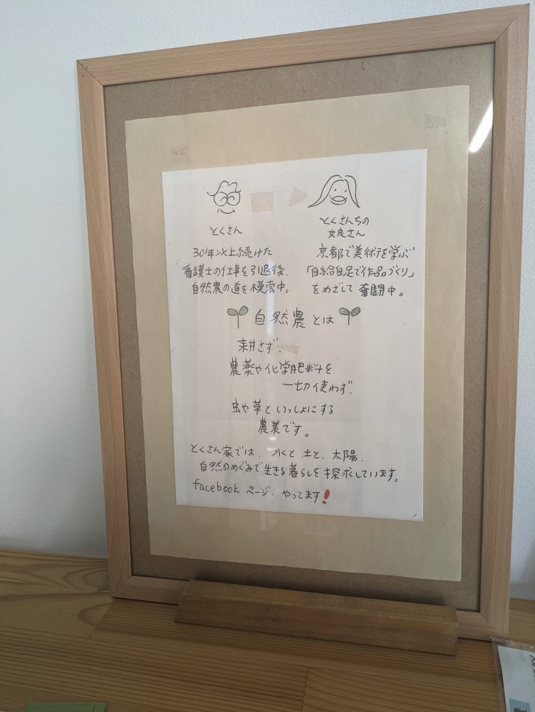 店内の隅には『とくさん家の野菜』というコーナーがあり、自然農で作られた野菜を、不定期で店頭販売をしていることがあるそうです。